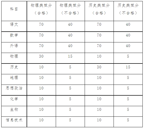 (1)折算分值:以江苏省普通高中学业水平合格性考试结果为赋分依据,折合总分300分。具体赋分办法见下表: