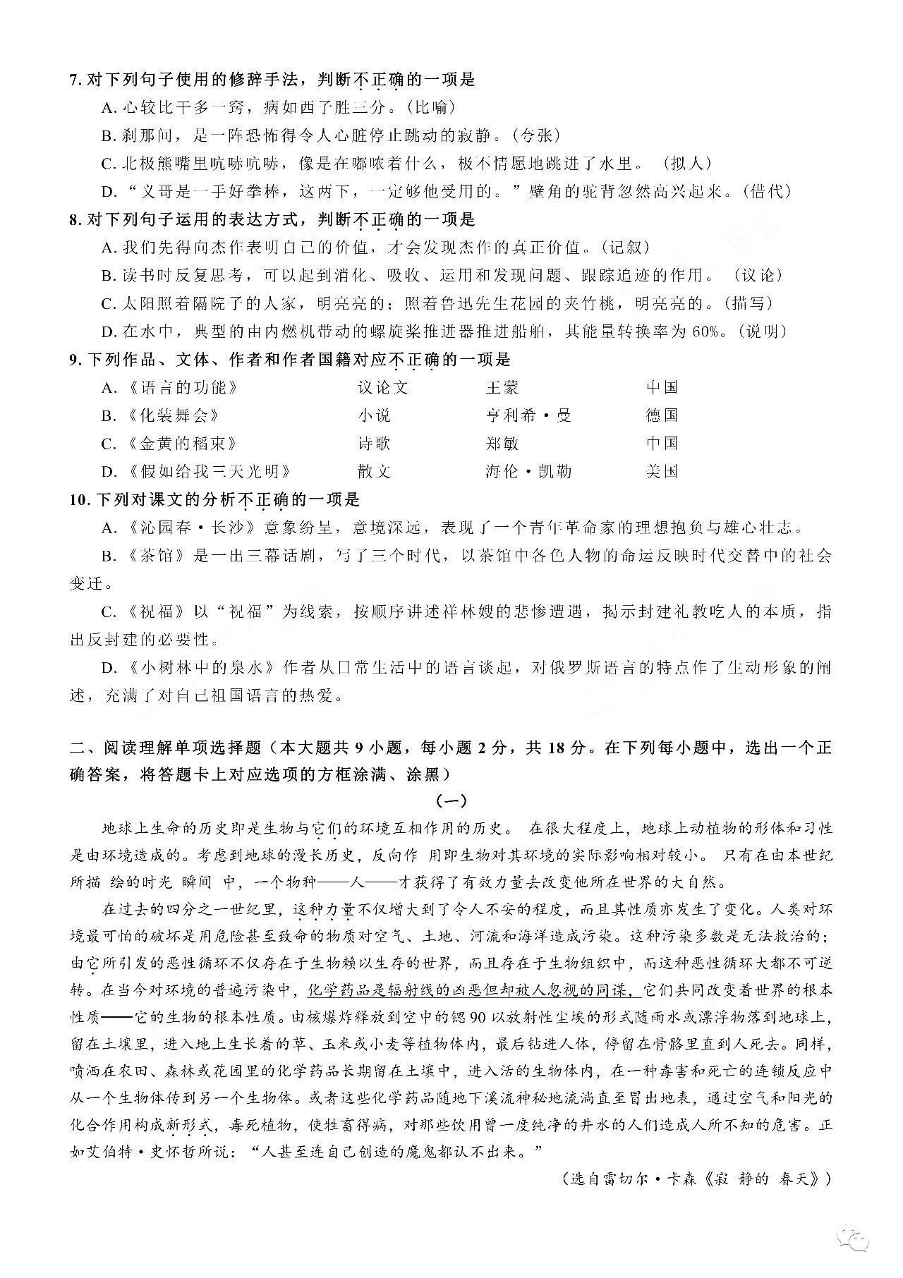 导读:江苏省2023年中职职教高考文化统考语文试卷
