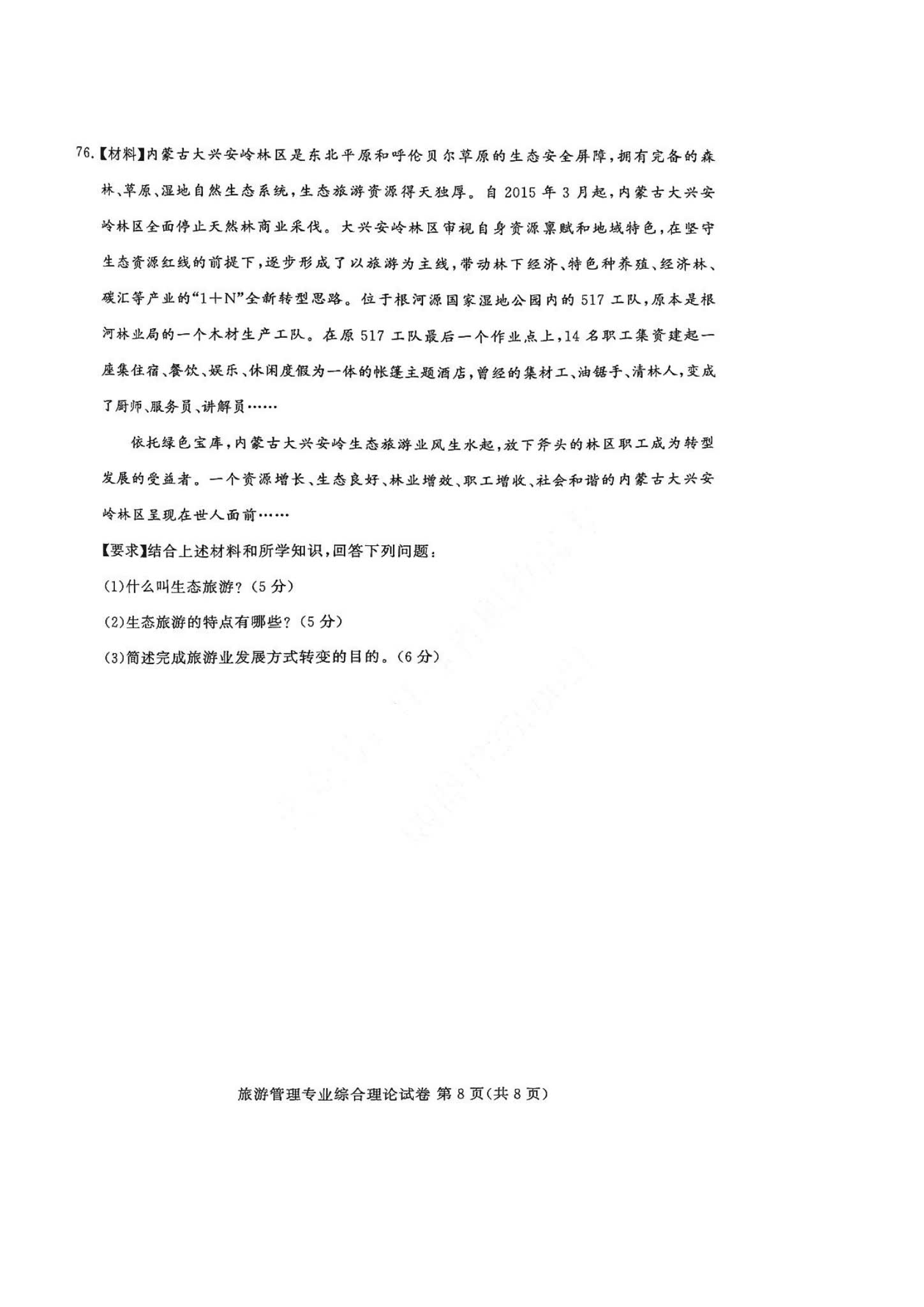 您现在的位置: 江苏职教高考网 >  真题资料 > 专业综合理论  > 江苏省2022年中职职教高考文化统考-旅游管理专业综合理论试卷